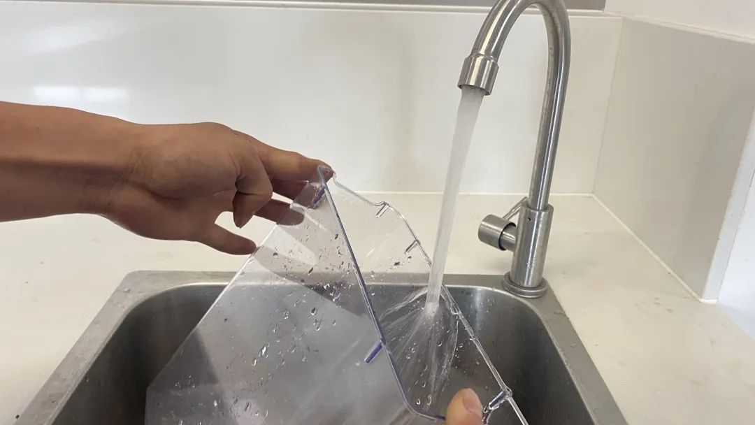 用温和的洗涤溶液彻底冲洗豆缸和盖子,后用清水冲洗干净。