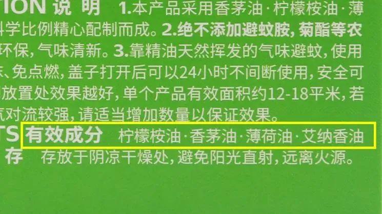 其他植物精油驱蚊产品,基本上只是采用了单一精油配方,主要成分只有香茅油一种,这明显不足以达到良好的驱蚊效果。