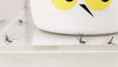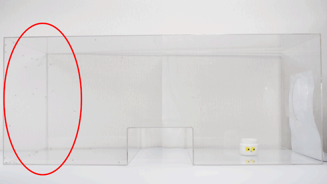 几分钟后,蚊子基本丧失了飞行能力,跌落到了箱子的底部。