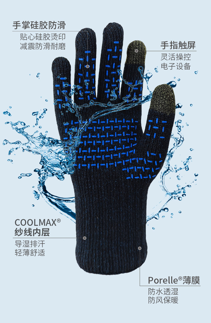 带长防水罗口,DEXFUZE®人体工学防风防水;高度透视透气!拒绝病毒!触屏无忧!户外作业骑行劳保都能用的上!