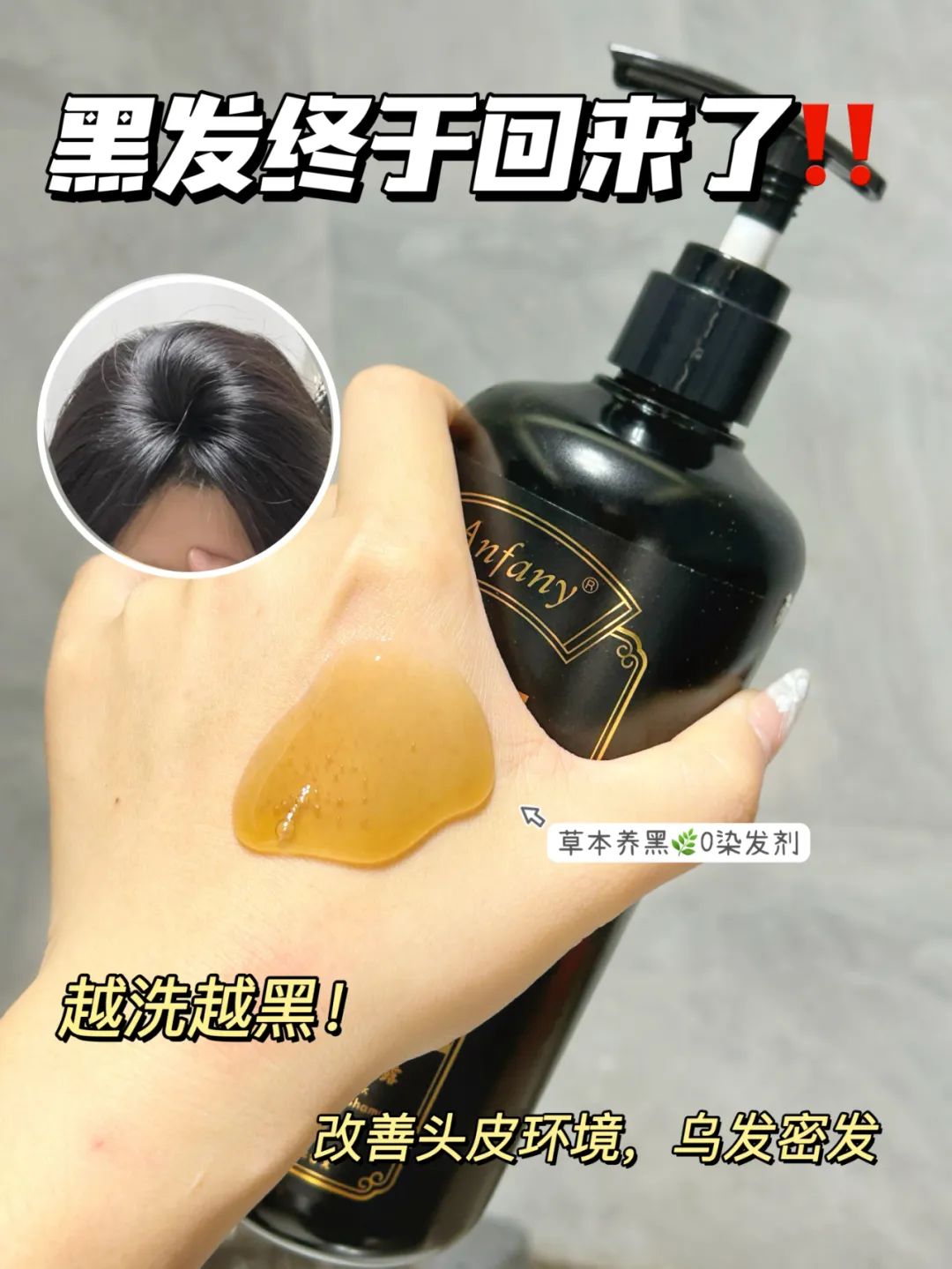 用了Anfany何首乌洗发水后,黑发从根部冒了出来,头发越洗越好。