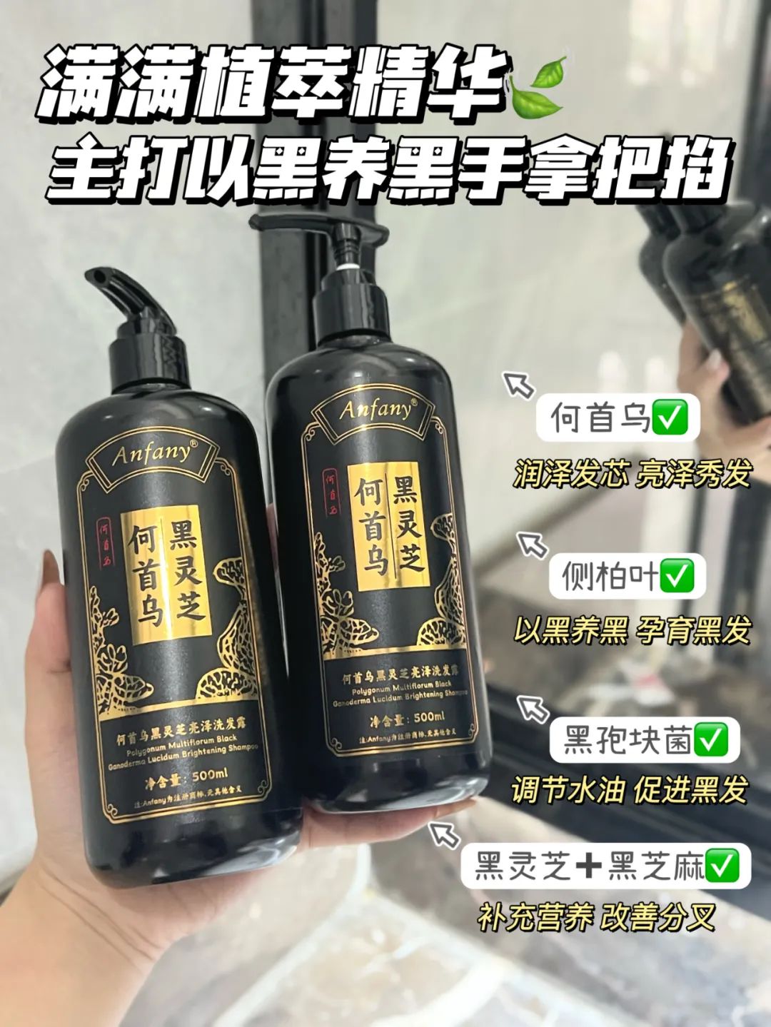 不同于有危害的洗发水,Anfany何首乌洗发露萃取植物精华。