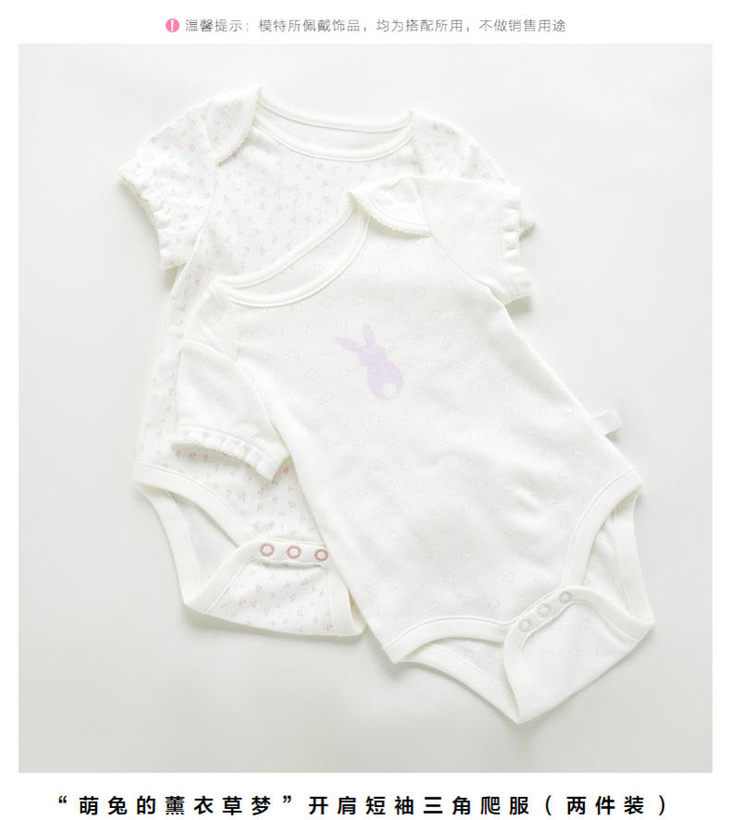 【领券立减到手价24元】萌兔开肩短袖三角爬服(两件装) (不退不换)