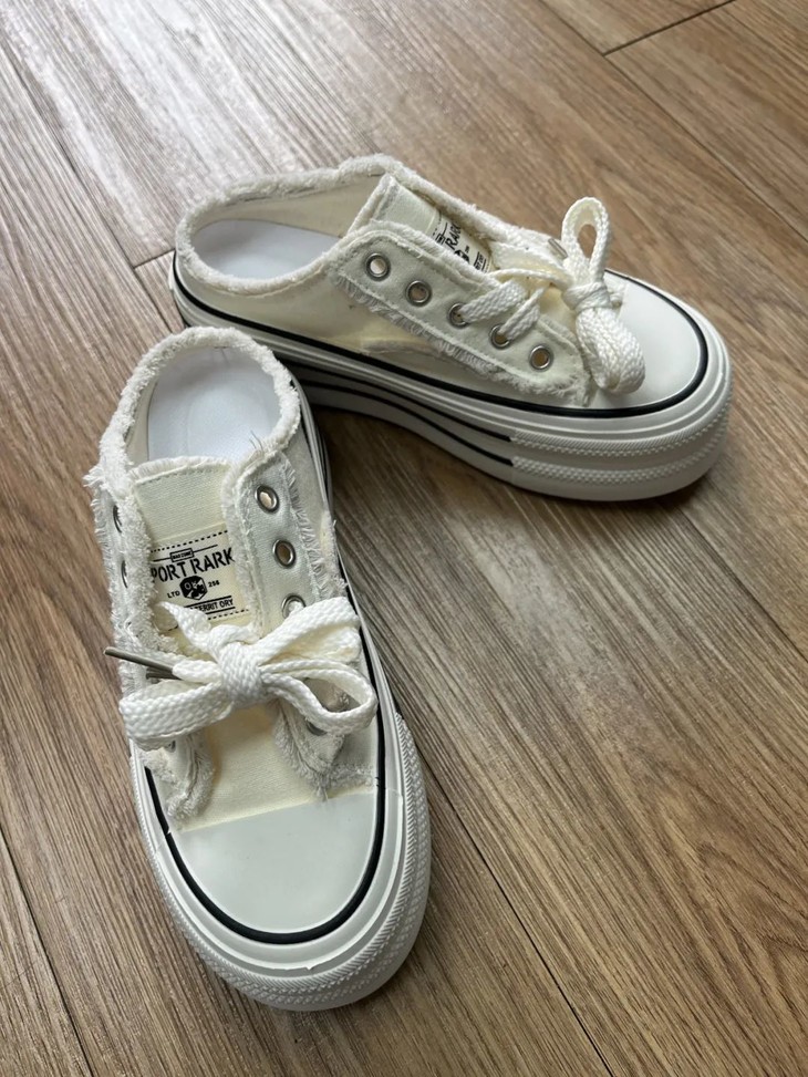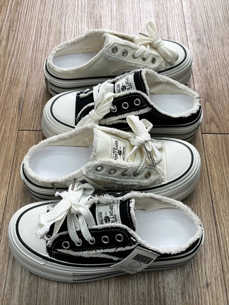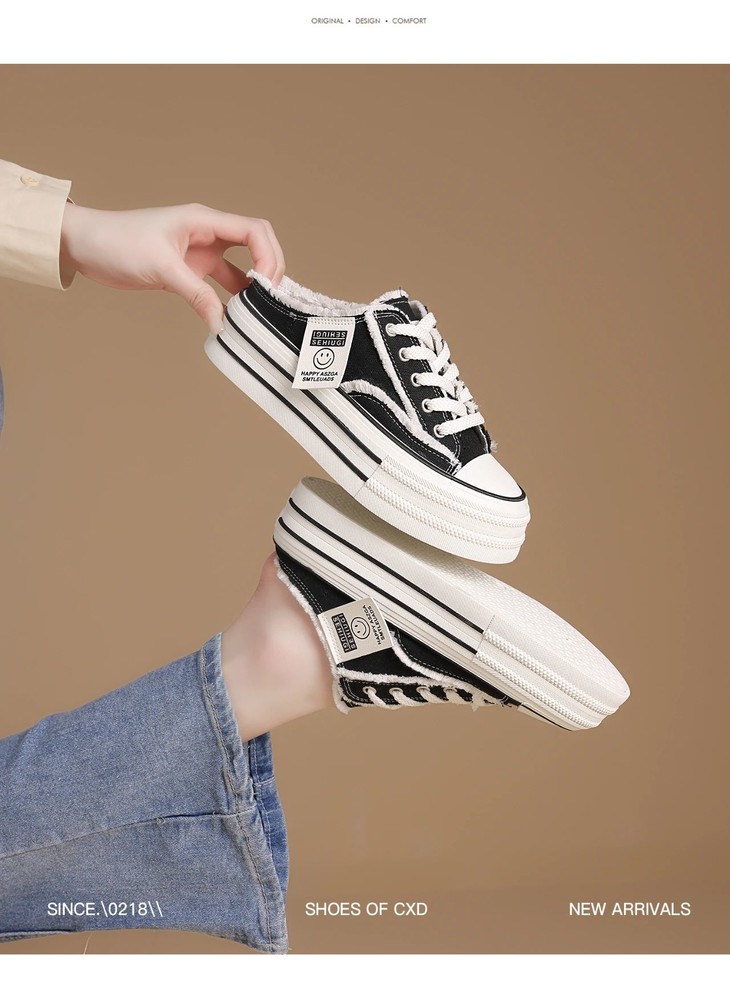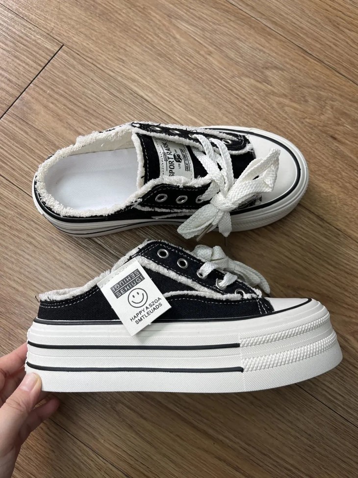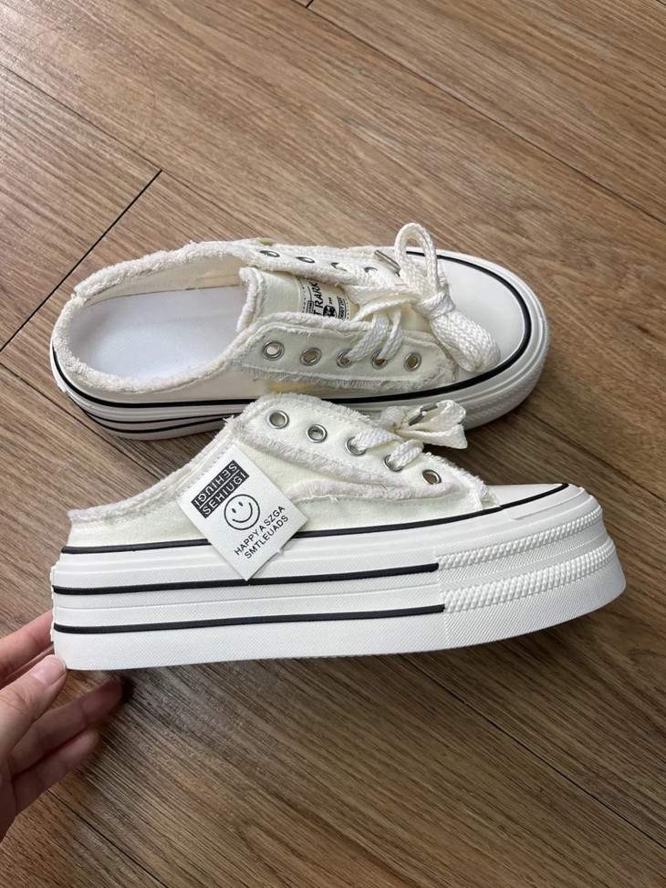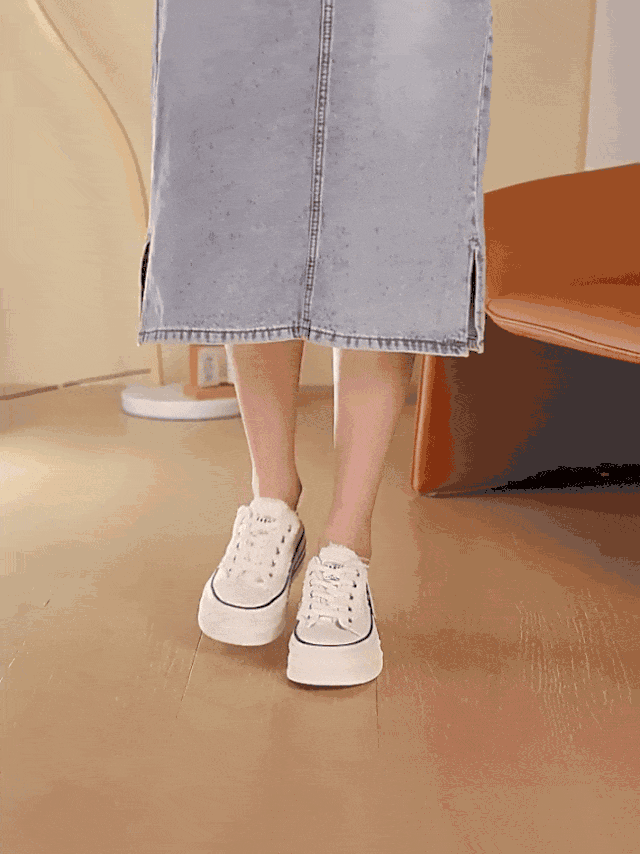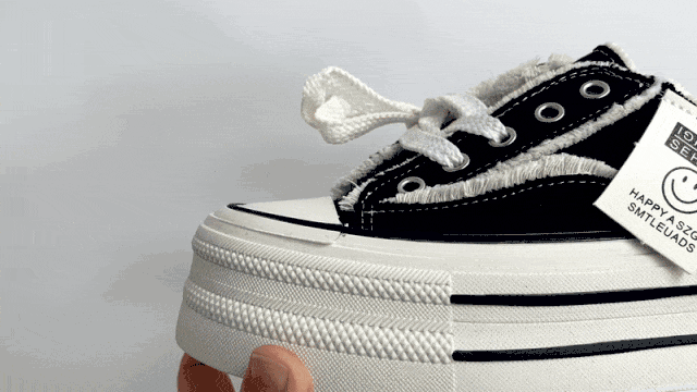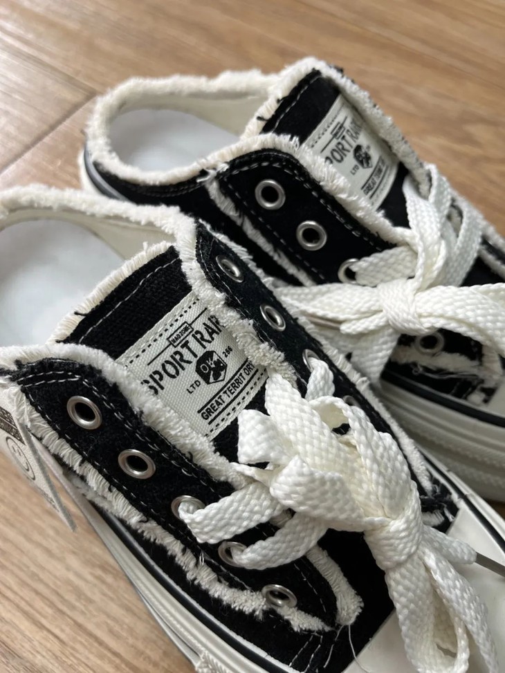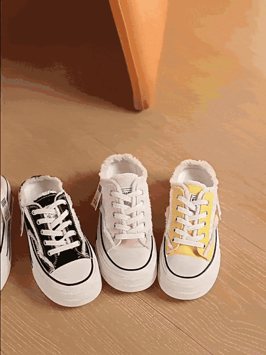 经典的帆布鞋鞋身加上边缘磨毛设计