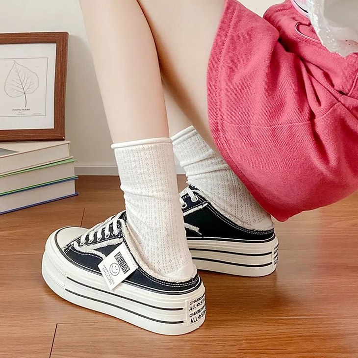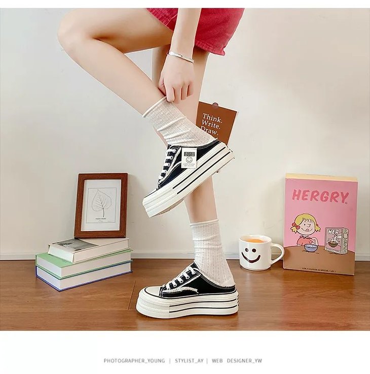 2.橡胶软底,5cm厚底增高,小个子也能轻松穿出大长腿;