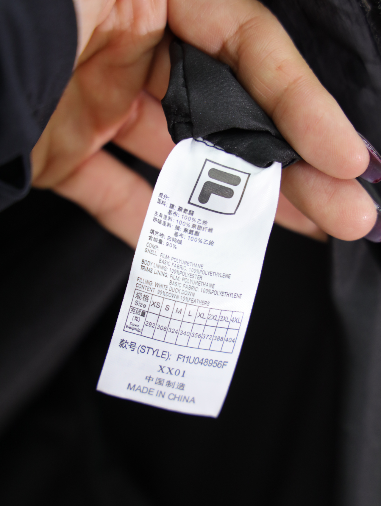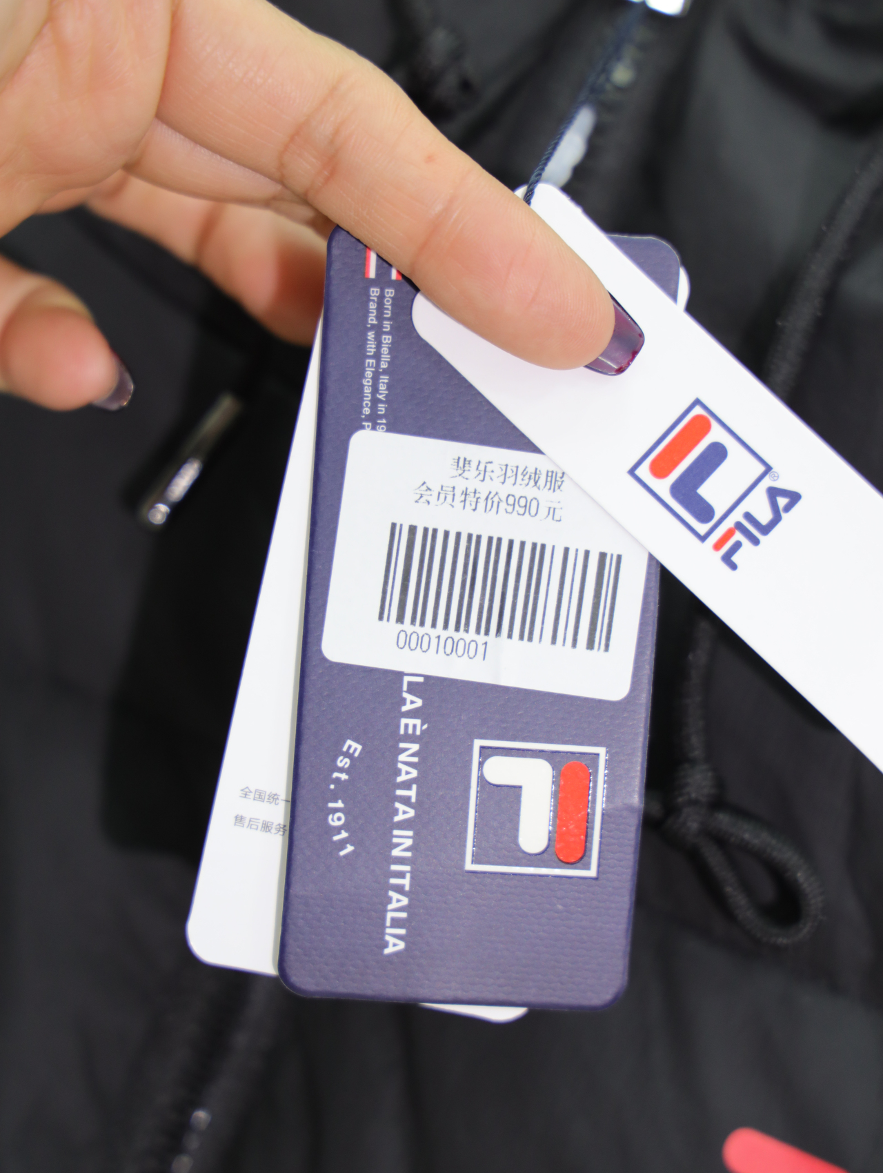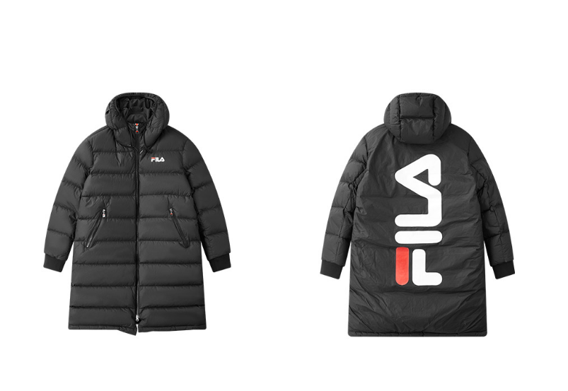 跟今年的爆款长款羽绒服有点差别的是背后的印花
