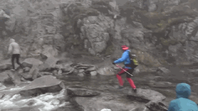 潮湿环境行进,衣物防水透气性能不仅关乎舒适,也代表着安全。水分的蒸发会带走热量,需要衣物迅速的排水与保持干燥。动图来源:seongkon kim上传的《Bad weather Climbing Kjeragbolten》