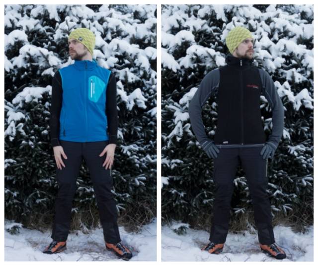 在严寒气候,我有时选用抓绒用于行进。晴朗条件下的冬季活动,活动时不穿沉闷的外壳能让我更敏锐的感知外界环境——这在攀爬时尤其重要。背心是一种很好的选择,在保住核心体温的同时让手臂灵活干爽(信息来源:ukclimbing.com 作者:Andy Kirkpatrick)。