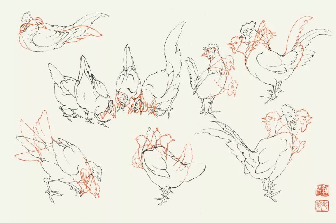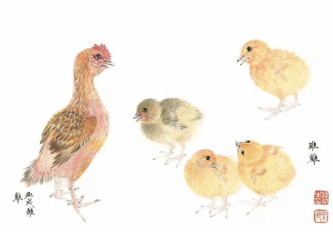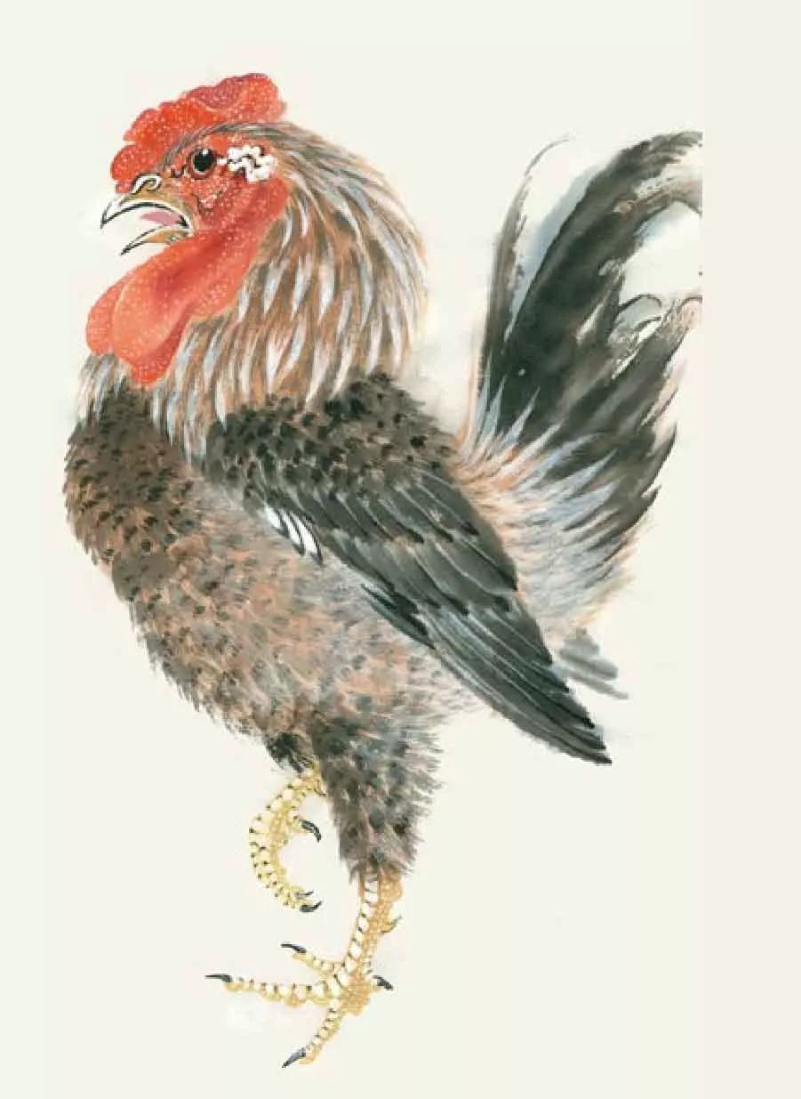 家鸡具“五德”,是中国历代文人、画家欣赏、赞美的家禽。家鸡品种形态各异,雌雄有别,雄者冠大、体高腿长、尾翎宽长、毛色丰富;雌者头小冠小、体矮腿短、尾翎短而齐、毛色素雅。