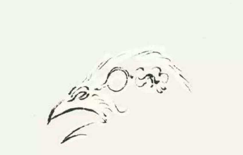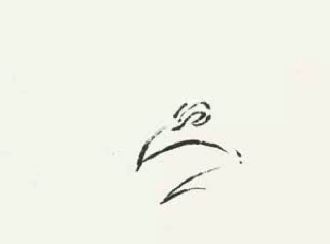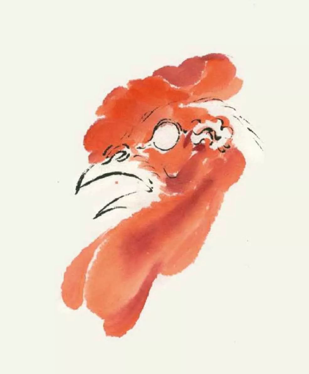 1.用重墨勾出公鸡的喙,注意线条要圆劲有力。