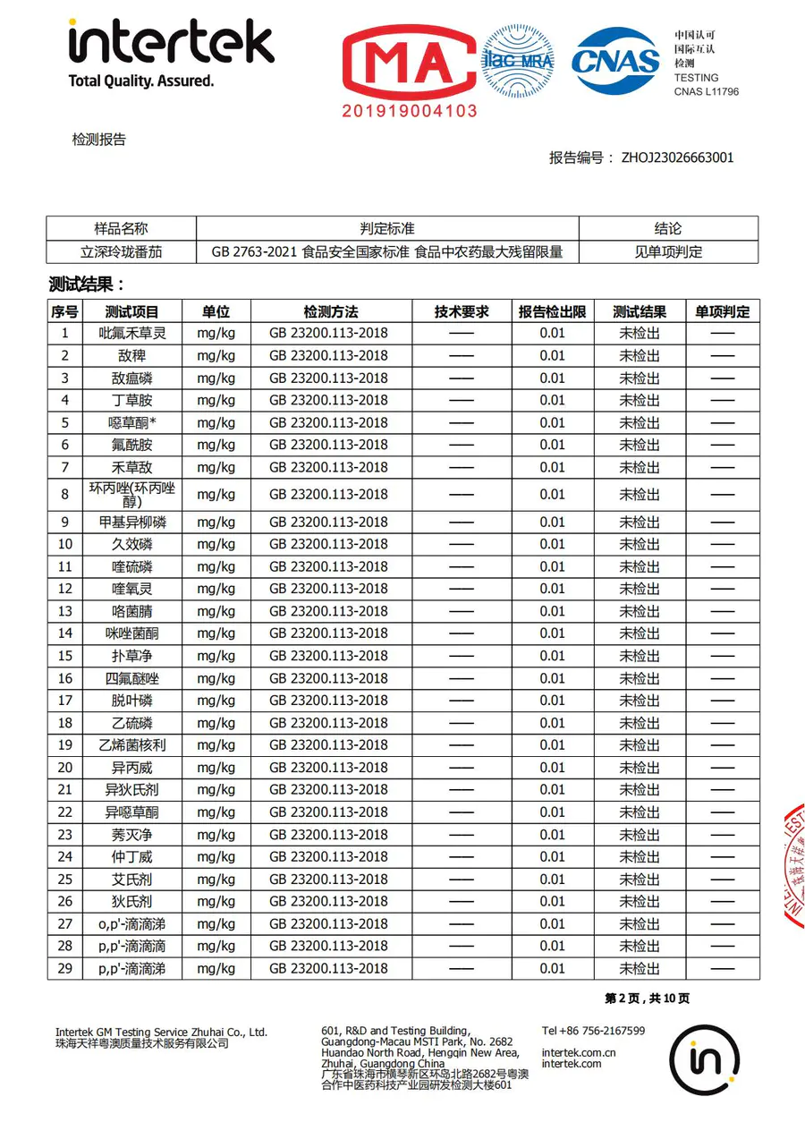 番茄检测报告2023年5月