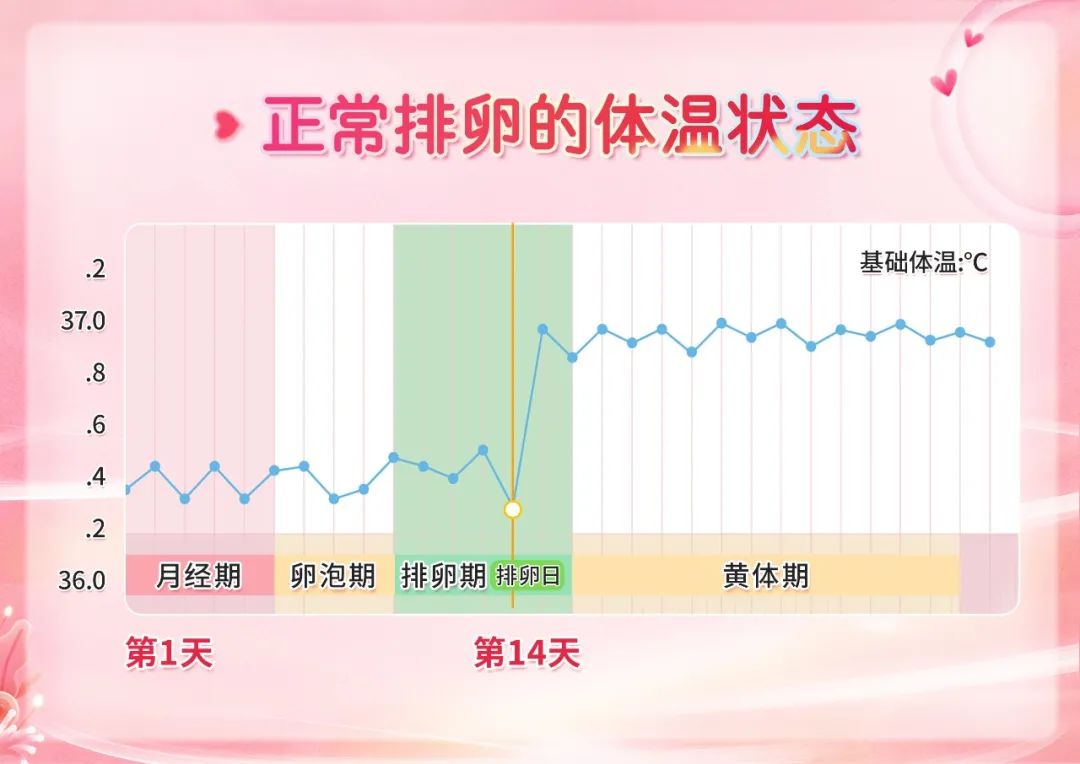 正常女性的基础体温以排卵日为分界点,呈现前低后高的状态,也就是“双相体温”。