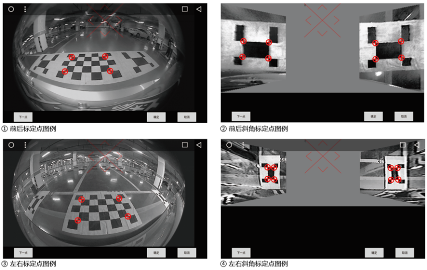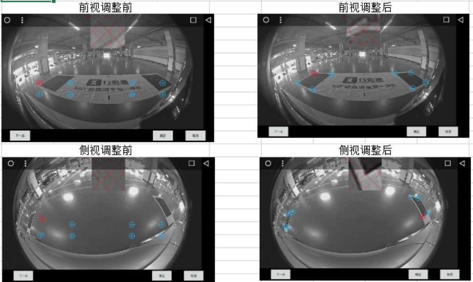 D. 保证前后摄像头画面没有上下颠倒,没有倾斜,左右摄像头的画面中,车身处于画面的下方
