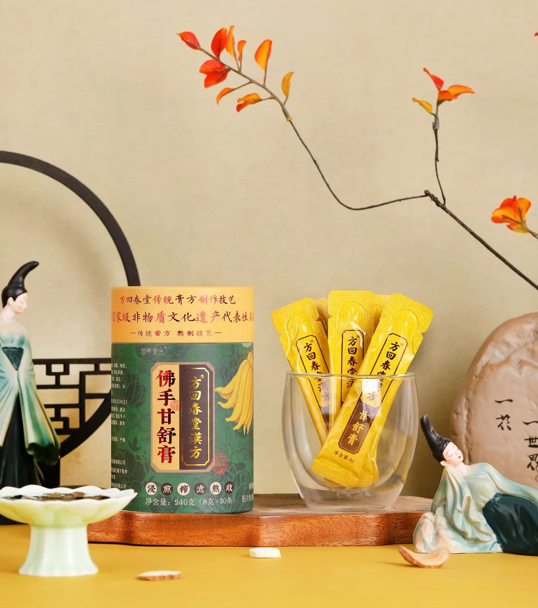 但是我们专门联合方回春堂出品的这款佛手甘舒膏,让大家足不出户就能享受到传统智慧成果。