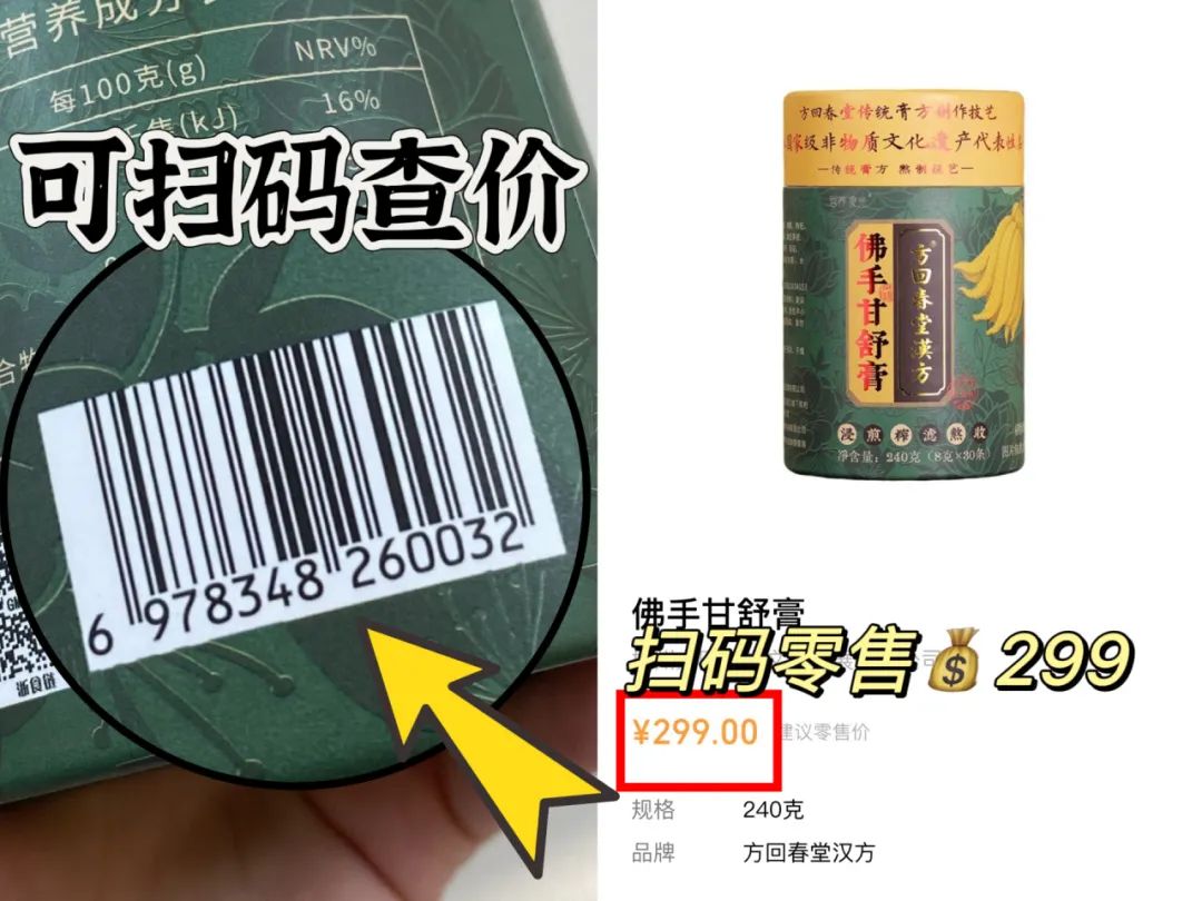 这款方回春堂汉方出品、非遗膏方制作技艺熬制的佛手甘舒膏,日常零售299,不便宜。