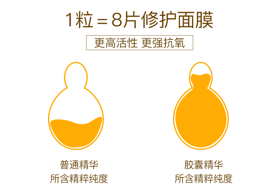 最值得一提的是,利用次抛锁鲜技术,小小一粒,封装了98%的高浓度精华,约等于8片修护面膜。早一粒,抗氧提亮,神采飞扬一整天;晚一粒,修护淡纹,御龄抗老焕新生!