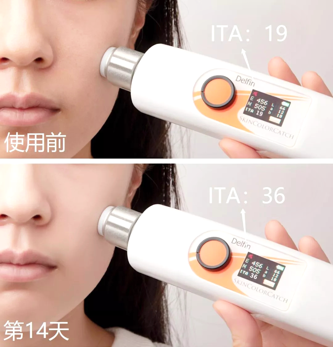 初次使用,皮肤摸起来更细腻了;坚持使用,脸上黄气肉眼可见变淡,经专业肤色探测仪检测,皮肤亮度提升47.2% ↓