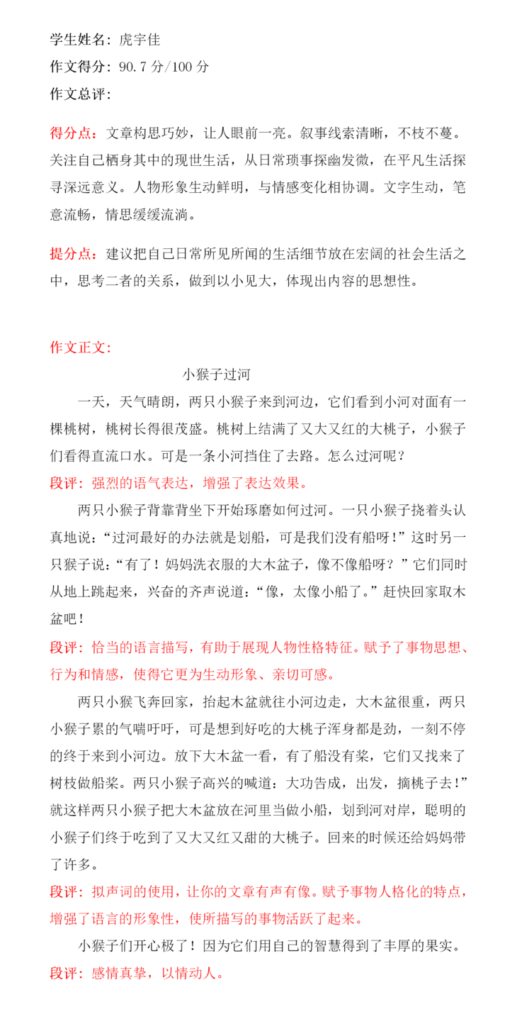 孩子还需加强写作能力,我认为培养孩子的阅读能力、想象力最为重要,读书多了以后,孩子的想象力自然丰富起来。保持良好的阅读习惯,在阅读中成长,在成长中阅读,争取写出更好的优秀作品。