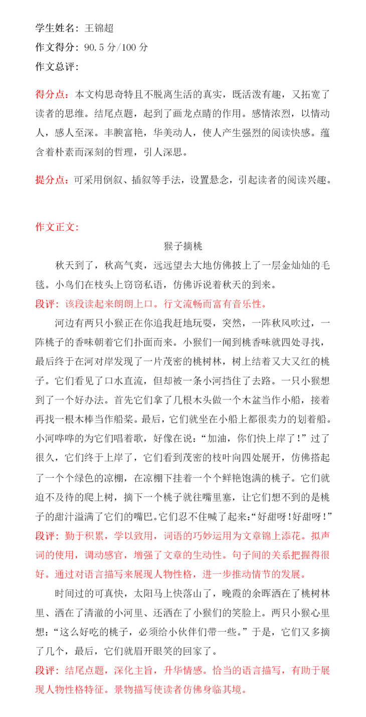 通过合理的想象,丰富的语言和动作描写,将聪明可爱的小猴子形象跃然纸上,文章语言充满童真童趣,故事情节设计合情合理,叙述自然生动,尤其结尾点睛之笔,反映出意蕴深刻的哲理,既为动人之处,又有教育意义。