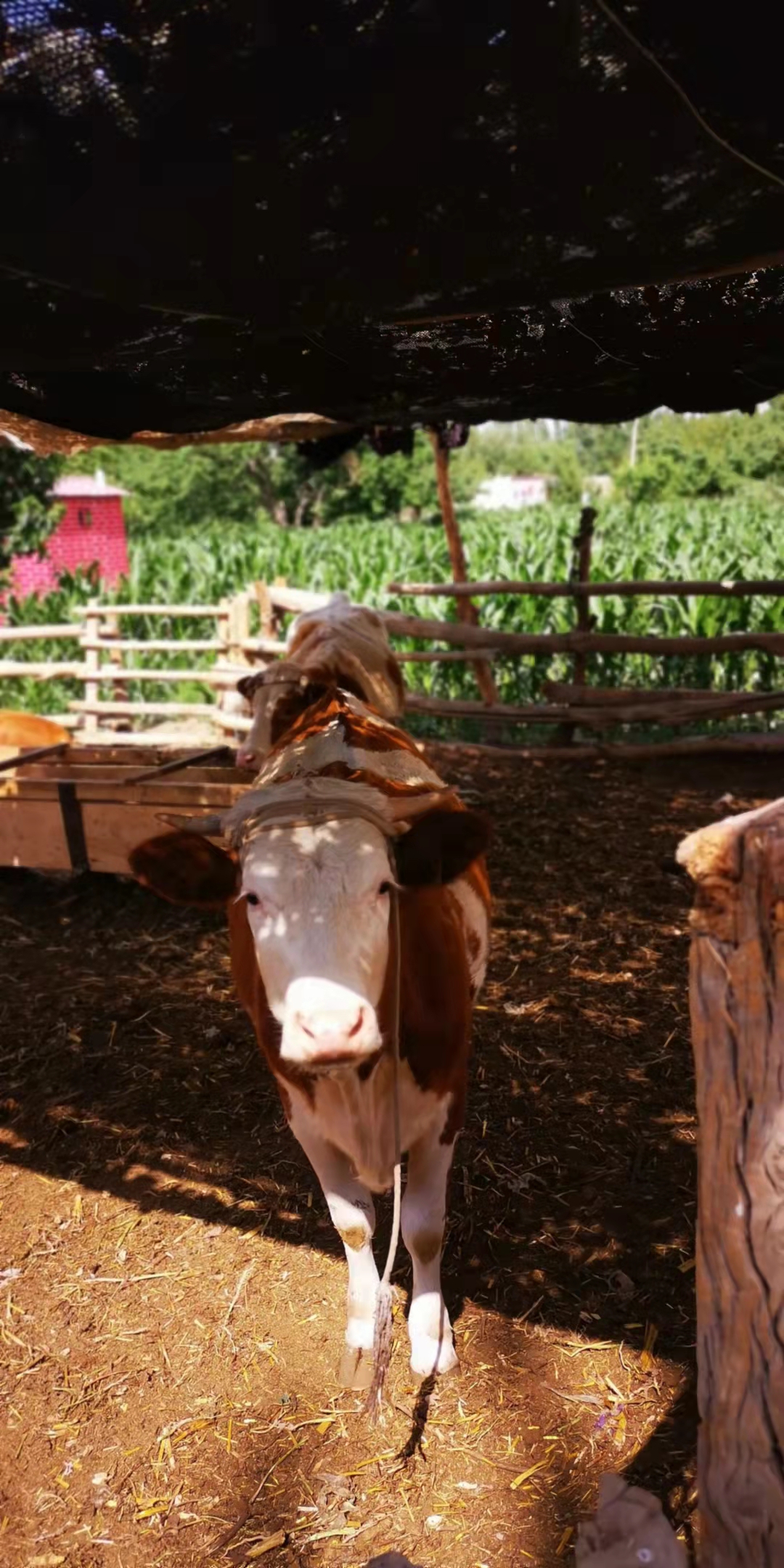 这是在新疆的轮台县小白杏的种植基地遇见的,维吾尔族老乡家养的奶牛,新疆当地多制作奶茶,需要大量的牛奶,所以在新疆的农村随处可见奶牛的影子,