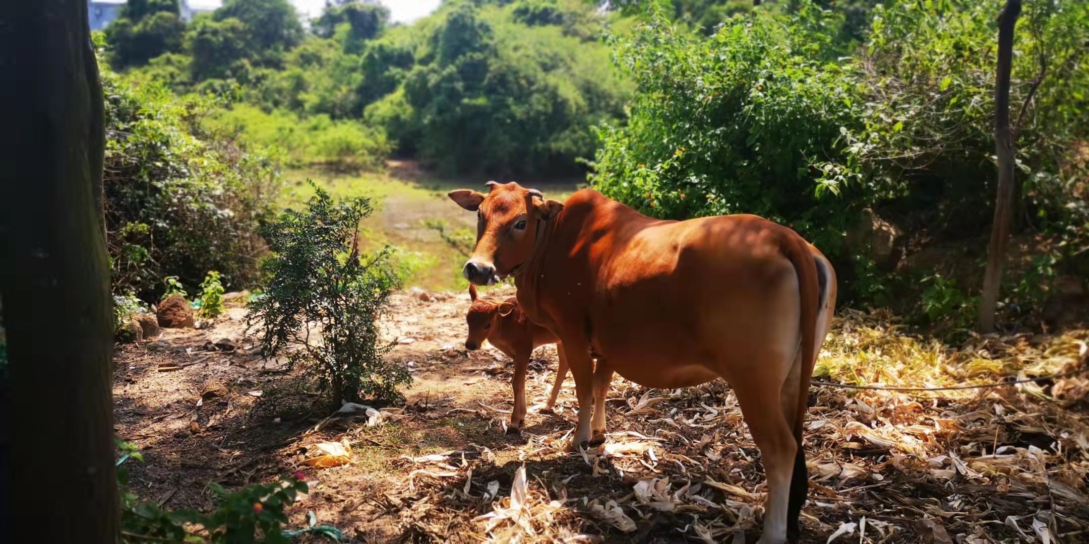 这是福建厦门遇见的一对牛母子,在杨梅的分拣产地的旁边,突然遇到的黄牛,很是可爱,母牛处处流露出对陌生人的警惕,生怕会威胁到小牛的安全,