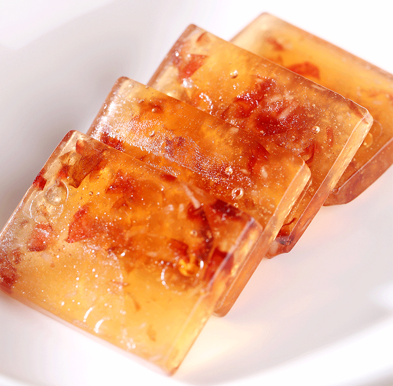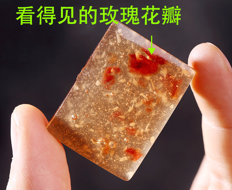 糕体晶莹剔透,不含杂质,看得见的玫瑰花瓣!