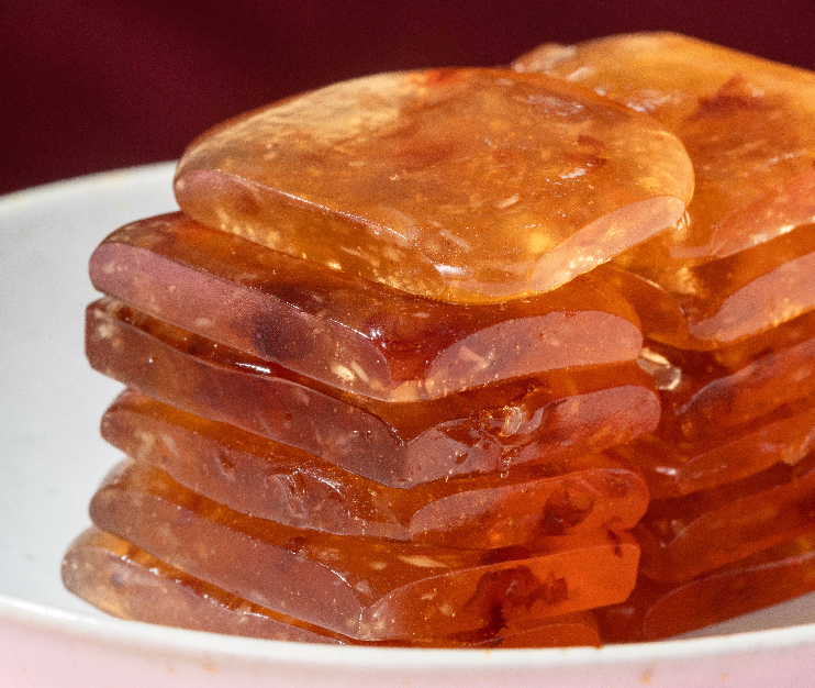 足足酿制180天,制成玫瑰花酱,再熬入花胶糕中,