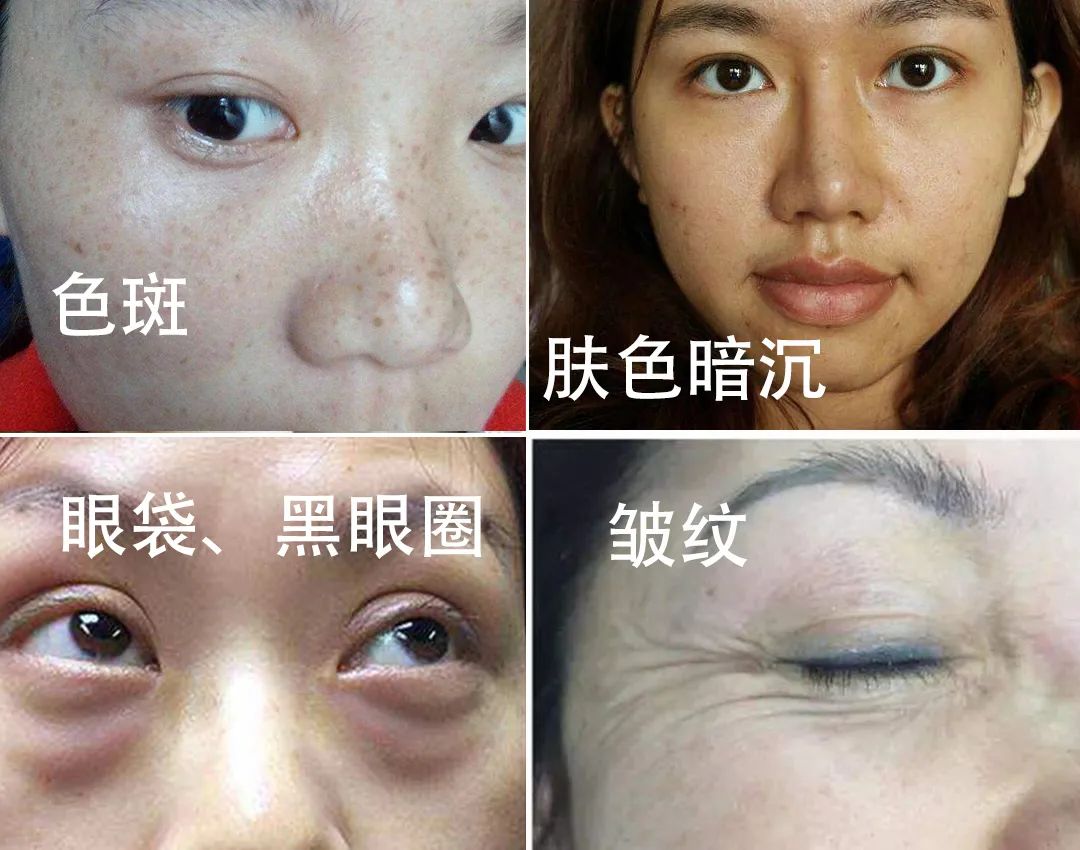 生活严重不规律,导致色斑、暗沉、眼袋黑眼圈、鱼尾纹法令纹等各种肌肤问题横生,看上去瞬间老10岁!