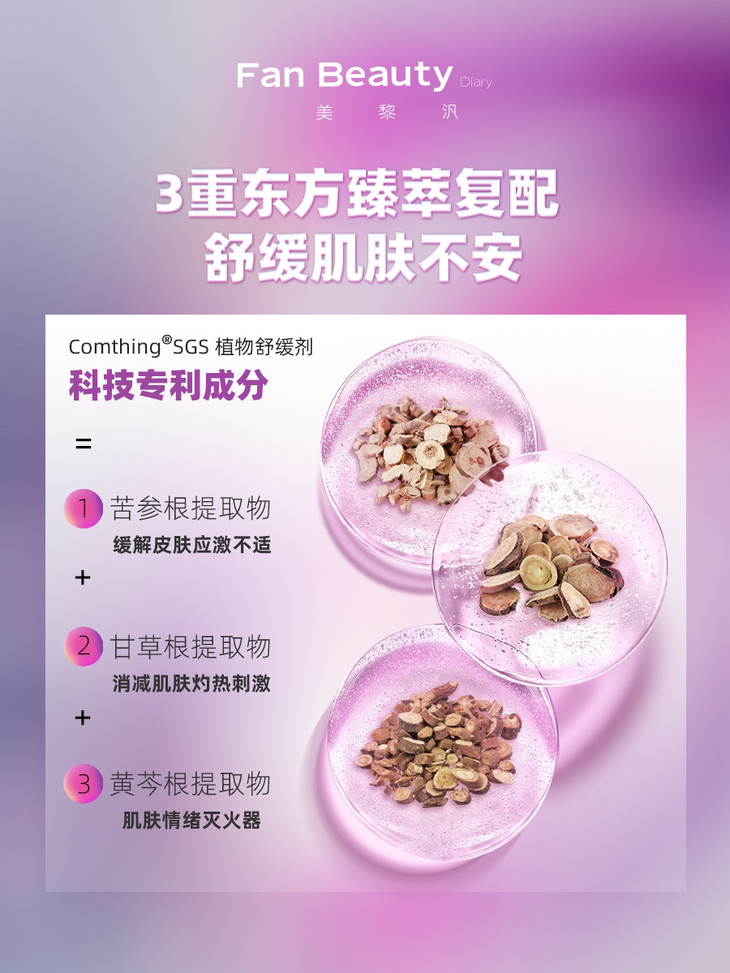 为什么进阶修护,要选择Fan Beauty新品麒麟竭菌菇丝发酵修护面膜?因为它通过四大功效植萃成分,「分阶修护」面临多重问题的敏感肌肤。