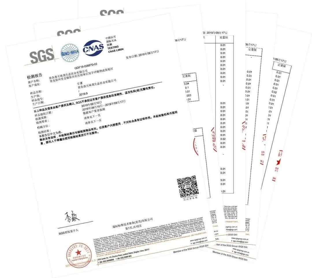原材料红薯,通过了265项SGS的专项检测,没有任何农药残留,这才是可以放开吃的原料,也从原料端保证了产品质量的稳定。