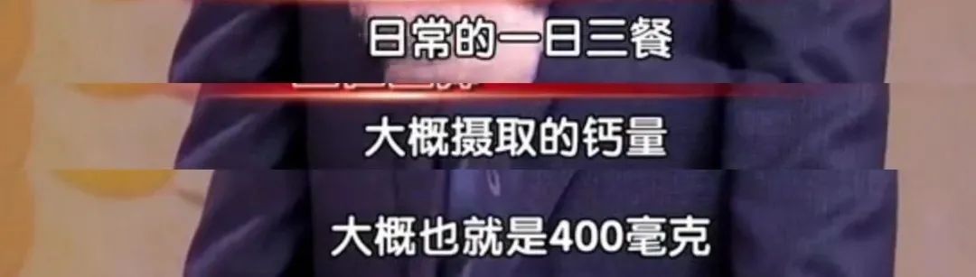 专家说:中老年人每天钙需要800-1000毫克,但是我们日常一日三餐,钙摄取量仅为400毫克,距离推荐摄入量相差600毫克!