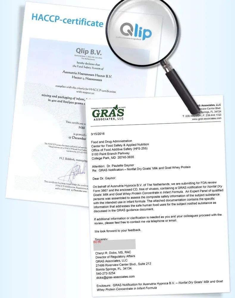 工厂通过了IFS国际食品标准认证,羊乳清蛋白通过FDA GRAS认证,让您喝的更放心。