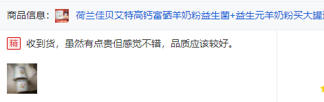 有些质量差的奶粉冲泡的时候容易结块,而这款羊奶粉粉质细腻,更易溶解冲泡。