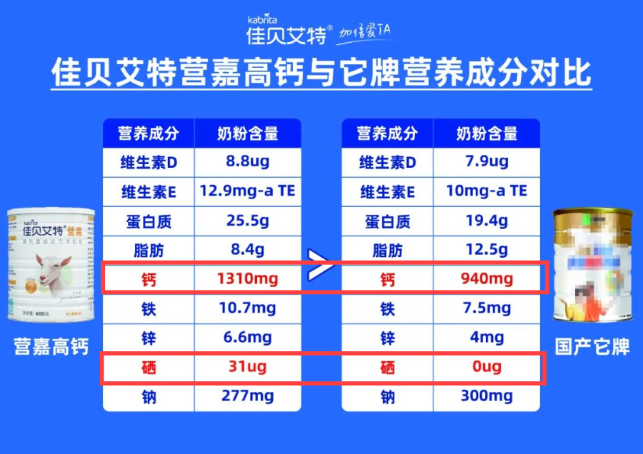 亲自对比了一大圈以后发现,这款佳贝艾特的羊奶粉其 钙含量达到了1310mg/100g,而普通奶粉的钙含量仅为940mg/100g,更是普通牛奶钙含量的13倍!