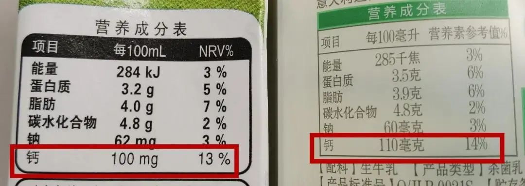 而市面上普通的常温奶、生牛乳每100ml的钙含量为100mg~110mg,喝一盒也就补充200mg左右,还是远远不够啊!