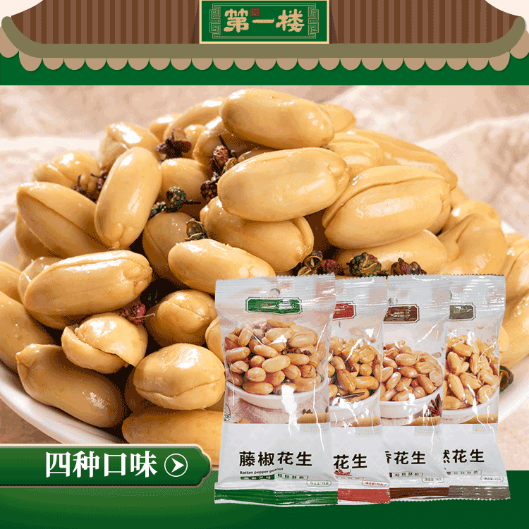 第一楼花生有四种口味,每个口味都有它的独特之处。且每一袋的净含量在78g左右,中等包装,无论下酒还是当零食,都是美味又方便!