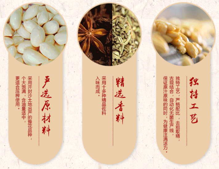 采用八角、茴香、甘草等十多种精品佐料,进行烹饪,每一粒果实都非常入味,口感酥脆,满口溢香。