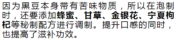这款黑豆,配料都是常见食材,可是味道却出奇的好,黑豆浸透酸甜的醋汁,入口软糯,酸度、甜度都适中,老人、小孩都能接受。