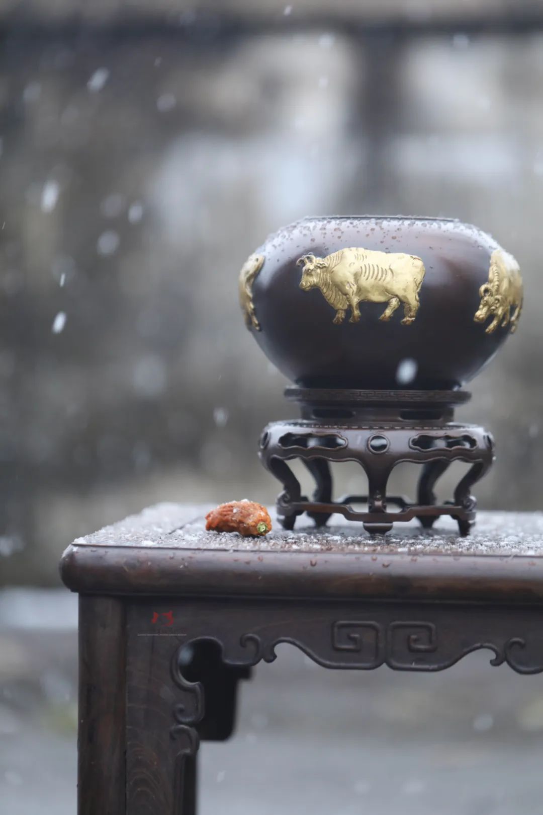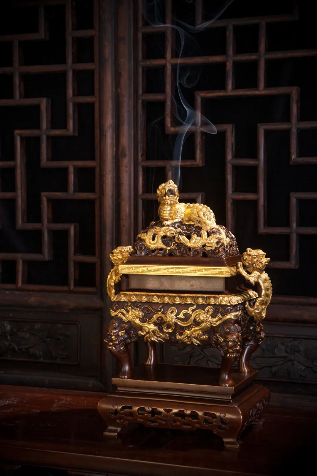 成炉所耗之功,集镂空雕铸,深浅浮雕,描金錾刻于一体,形意相称,寄理于器,古风古意。