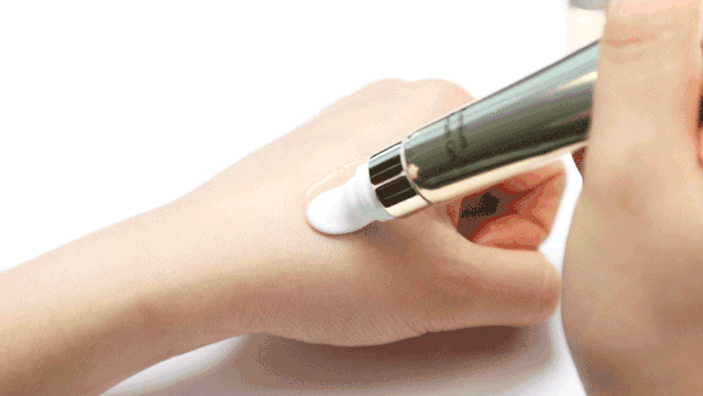 晚上敷了面膜,抹点爽肤水,就可以上“小熨斗”了,哪里有纹涂哪里,眼周、唇周、额头、颈部,涂完按摩提拉一番。