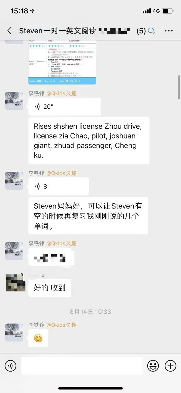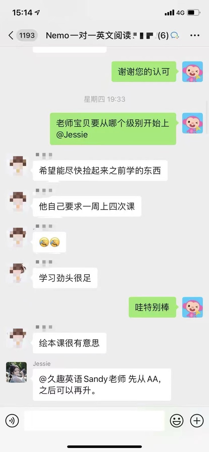 固定授课的中教老师也在,会在群里关注家长反馈的一些问题。但是授课老师在上课期间或者休息的时候不一定能及时回复,老师看到信息之后都会尽快解答。