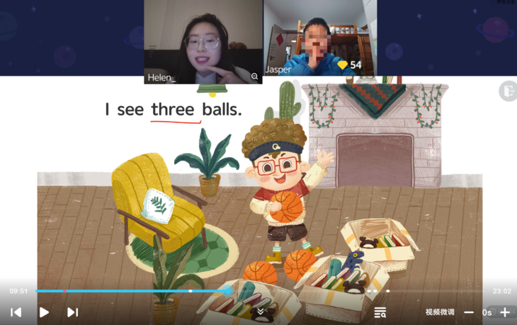 由于课程内容是英语分级阅读,所以授课语言肯定主要是英语。老师会根据家长的需求,或者孩子的实际课堂表现来跟家长确定是使用哪一种模式给孩子上课。