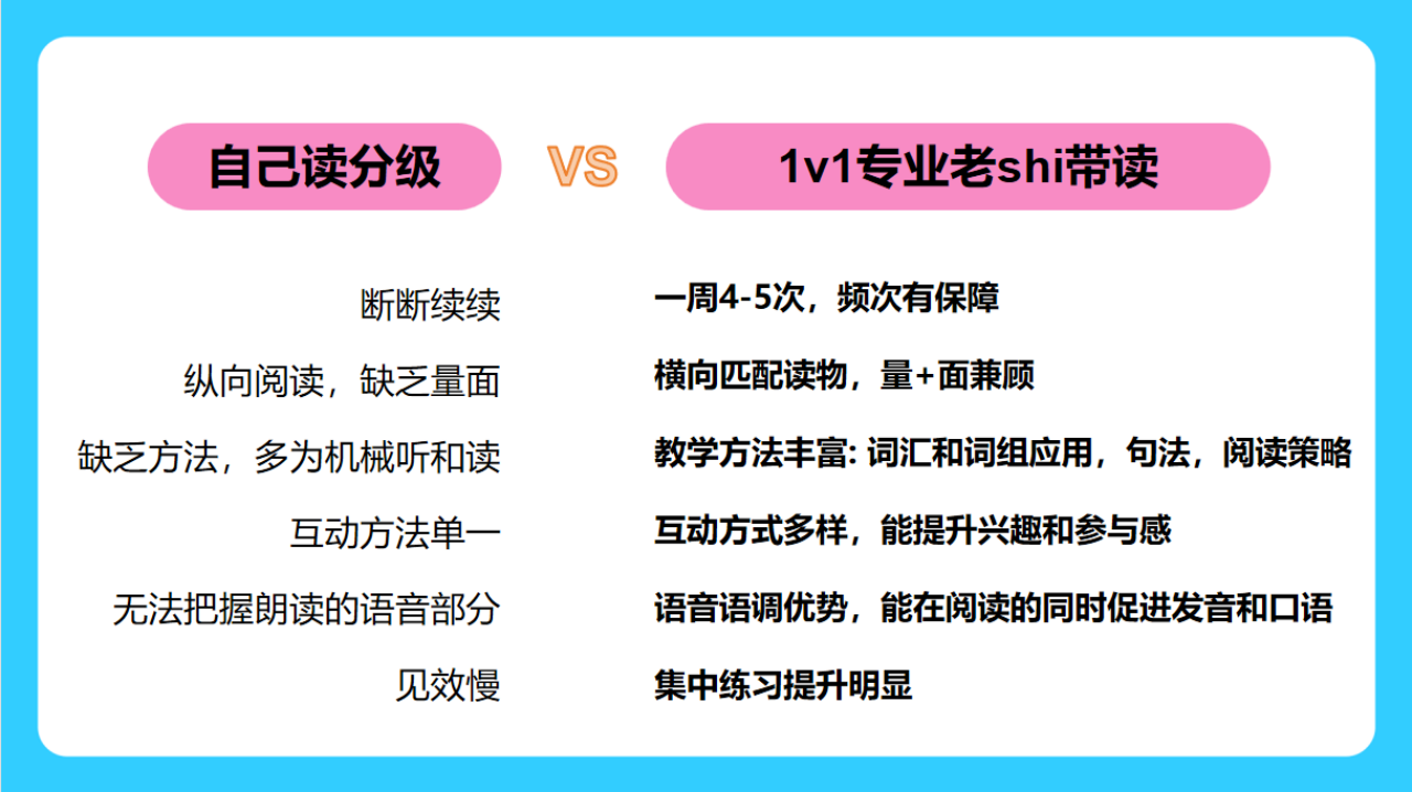 从来没有推荐过1v1的分级阅读课,甚至是没有推荐过任何英语阅读课。