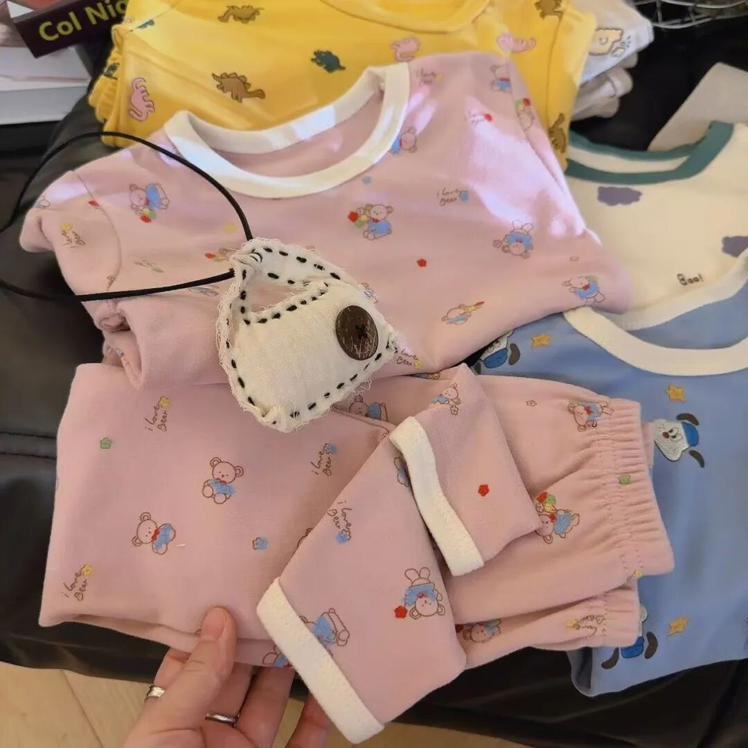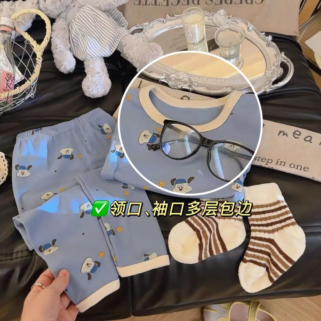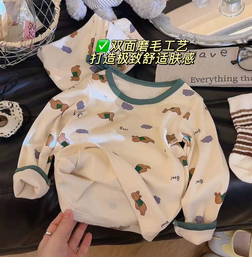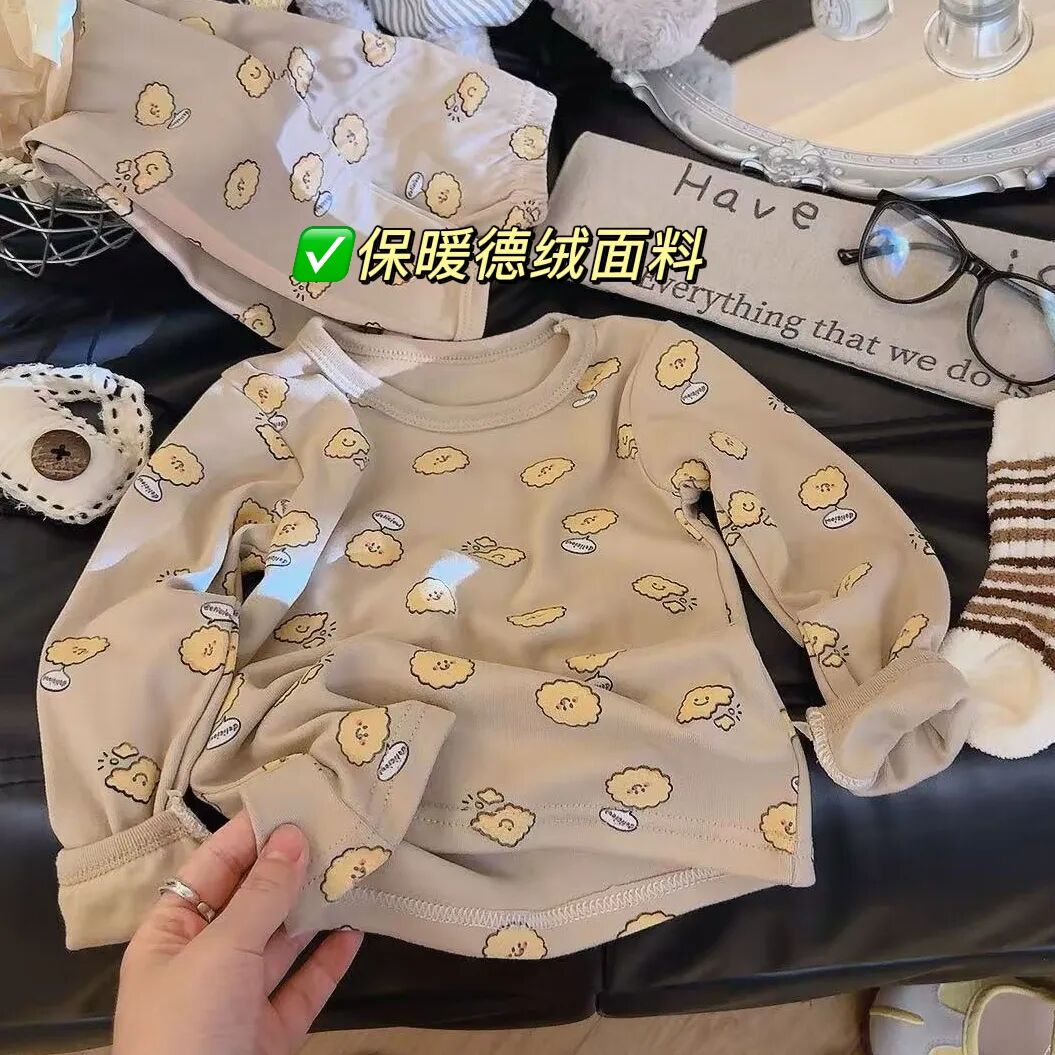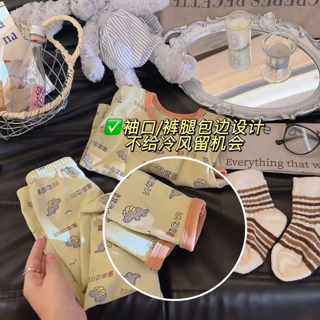 降温福利!儿童德绒秋衣秋裤套装 49.9 元 2 套,双面磨毛,保暖好穿~