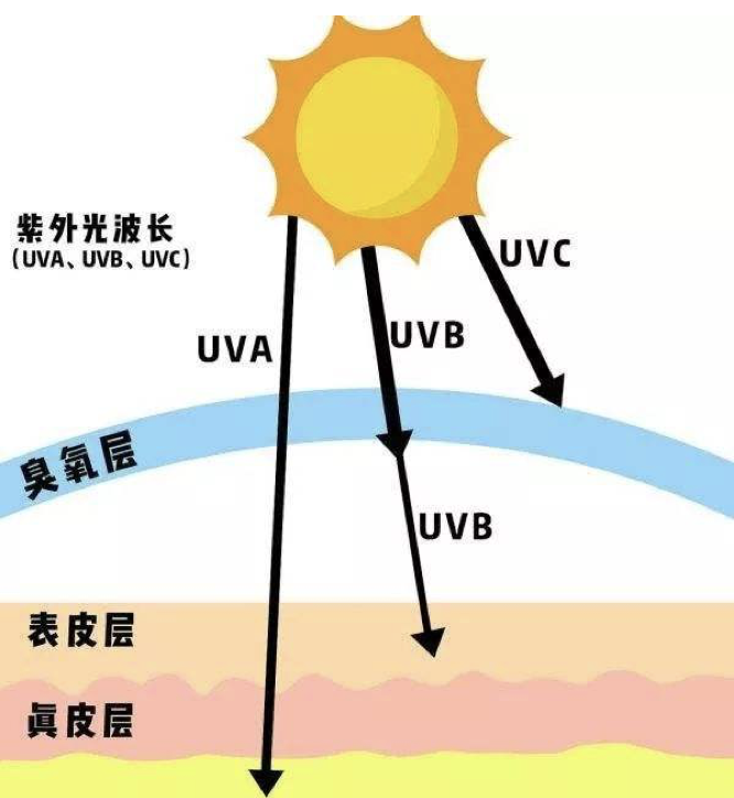 太阳光根据波长的长短,分为不同波段,其中与皮肤变黑、晒伤等相关的,是紫外线。紫外线根据不同的波长及穿透性,可以分为短波紫外线(UVC)、中波紫外线(UVB)和长波紫外线(UVA)。