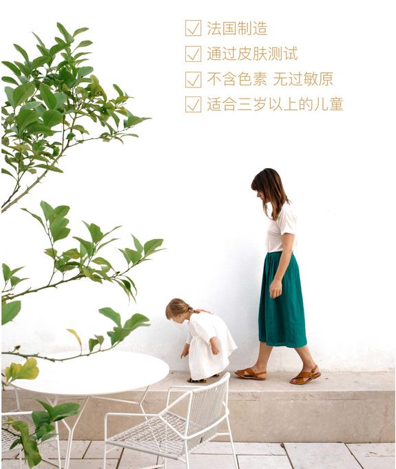 选用法国南部天然和有机成分(橙花,金盏花,蜂蜜,甜杏仁油,乳木果油等),不含防腐剂、不含硫酸盐、不含苯氧乙醇、不含硅、不含染色剂。新生儿和敏感肌都能用。