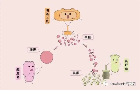 糖原经乳酸杆菌作用,产生的酸性物质-乳酸可以帮助维持阴道弱酸的环境;它产生的过氧化氢是一种天然的杀菌剂,可以让「敌菌」屈服,抑制「敌菌」的过度生长。