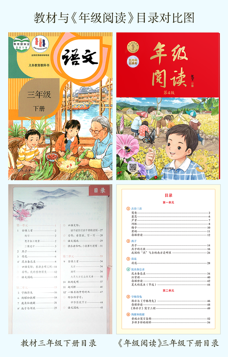 友情提示:《年级阅读》配套教材,可带孩子在暑假预习时同步阅读,扫清学习障碍。开学后可再次跟课阅读,加强对课文的理解。因为内容太过丰富,每次阅读,都会有不一样的收获。