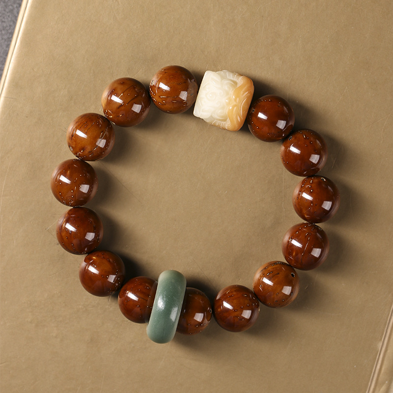 🪵棕红皮色珠子,盘玩后玉化透亮,能盘出“蜜蜡”一样的光泽效果,🧧颜值财富都有,福禄寿喜齐全!