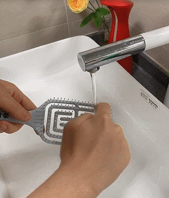 但是镂空梳子就不一样了,镂空设计可以很好引导水流,弄脏了只需要直接放在水龙头下冲一冲,水流就能轻松带走污垢。